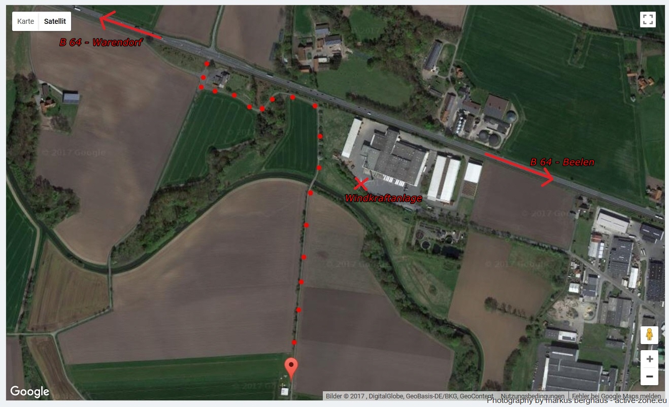 Generell erfolgt die Anfahrt aus nördlicher Richtung über die Bundesstraße B64, die von Beelen Richtung Warendorf führt. Von Beelen kommend, an der 2. Ampelkreuzung - ca. 300 m nach der Windkraftanlage auf der linken Seite, links abbiegen. Dann nach 50 m die erste Möglichkeit wieder links abbiegen. Jetzt dem Straßenverlauf bis zum Flugplatz folgen. Die Ampelanlage am Flugplatz unbedingt beachten!
